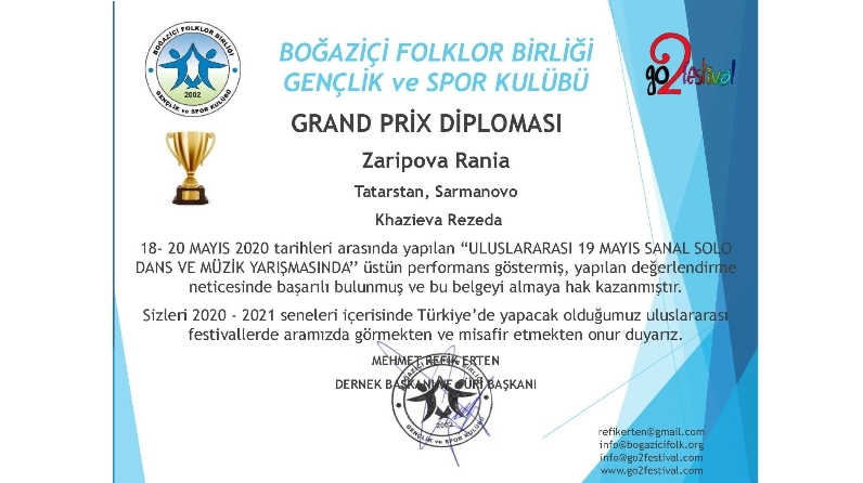 По итогам конкурса Рания Зарипова стала обладательницей Гран-при Международного конкурса.