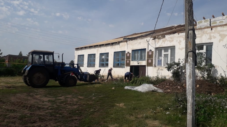 После ремонта кровли Янурусовского сельского Дома культуры идут работы по очистке территории