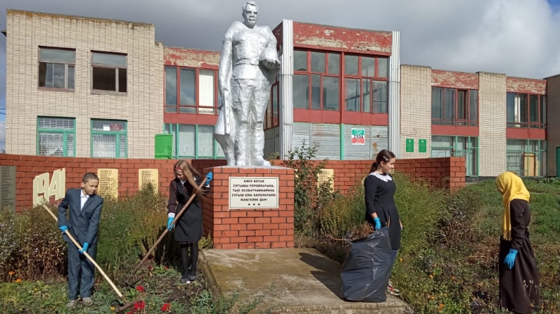На протяжении многих лет ученики и учителя нашей школы заботятся об обелиске погибшим воинам-землякам в годы ВОВ, находящемся на территории села. Ежегодно ученики убирают прилегающую к обелиску территорию. И снова в новом учебном году провели мероприятие «Гордимся! Помним! Чтим!». Мероприятие направлено на благоустройство и озеленение обелиска силами учащихся школы.