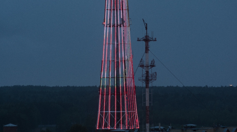 Казанская телебашня – крупнейший объект вещательной сети Татарстанского филиала РТРС, длина которой составляет 180 метров. Новая система архитектурно-художественной подсветки смонтирована на ней к ЧМ-2018.