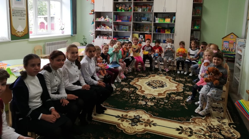 В рамках акции "Неделя добра" ученики 6б класса подарили детям МБДОУ "Берёзка" игрушки. Дети были в восторге. Воспитатель тат.языка Афзалова А. М. поблагодарила детей, поларила ученикам раскраски.