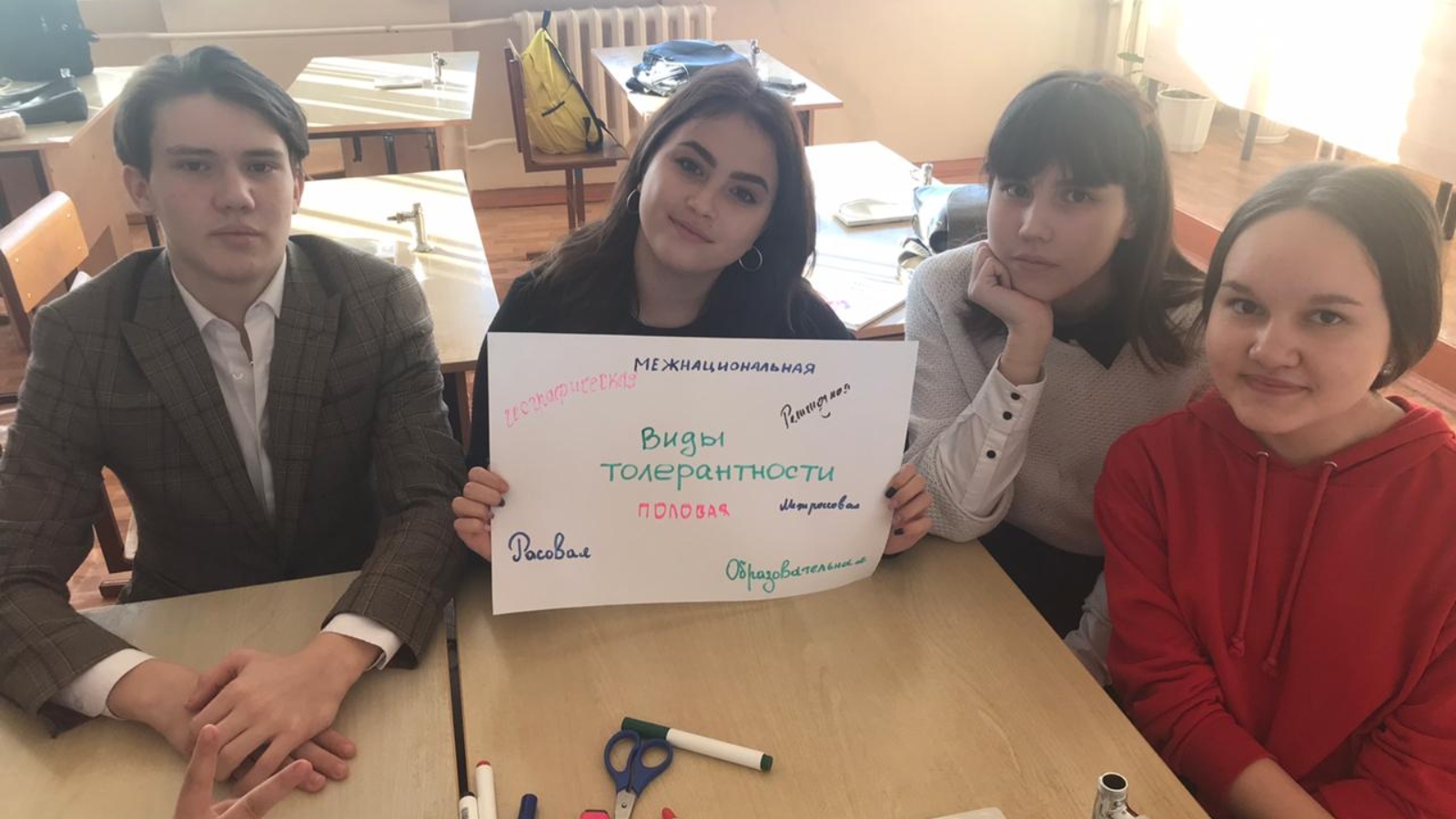 16 ноября-Всемирный день толерантности. В 11а было проведено внеклассное мероприятие «Не будь таким, как другие!». В ходе мероприятия учащиеся закрепили знания о понятии "Толерантности" и выявили основные её виды.