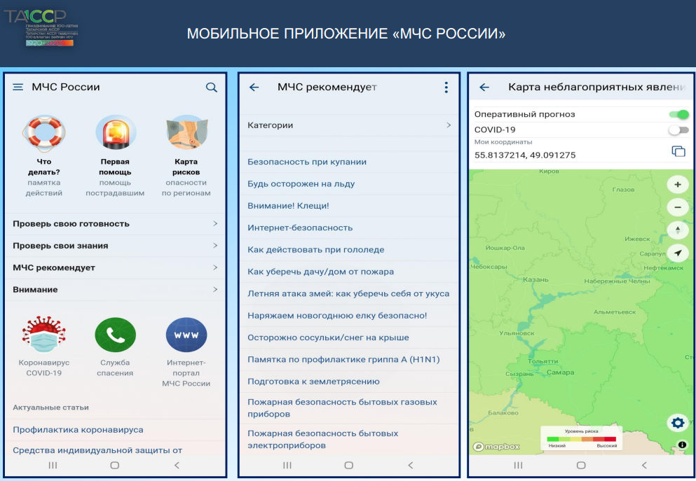 В настоящее время МЧС России разработало и внедряет мобильное приложение – личный помощник по действиям при возникновении чрезвычайных ситуаций и происшествий.