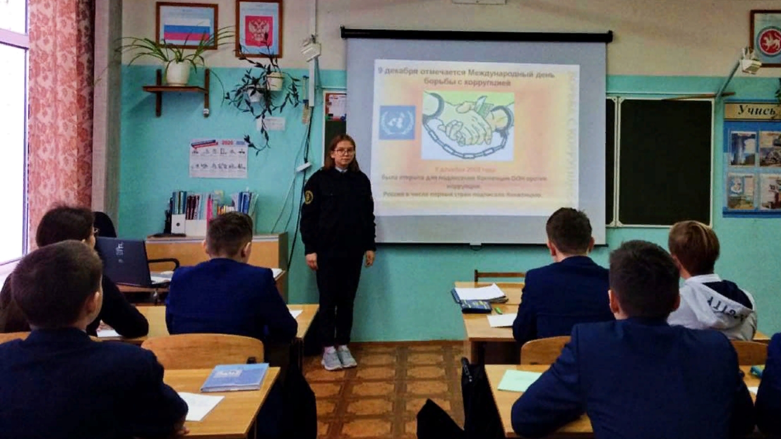 Ежегодно 9 декабря отмечается Международный день борьбы с коррупцией. Первоочередной задачей в борьбе с коррупцией является формирование антикоррупционного мировоззрения и правосознания. С этой целью в МБОУ «Джалильская СОШ №2», активистка отряда «Форпост» Степанова Русана провела со старшеклассниками классный час.