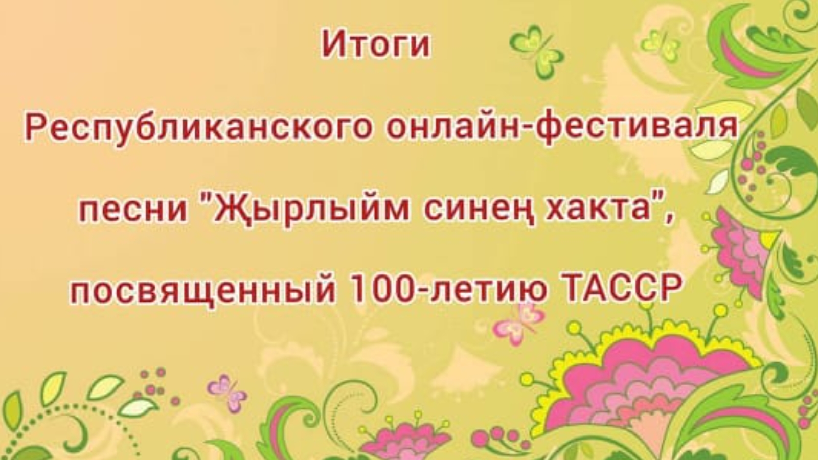 Республиканский онлайн- фестиваль песни ”Җырлыйм синең хакта”- посвященный 100- летию ТАССР, опубликовал итоги фестиваля, согласно которым вокальное трио “Юлдаш” и вокалистка Рания Зарипова, под руководством Резеды Рафисовны Хазиевой стали лауреатами 1 степени.
