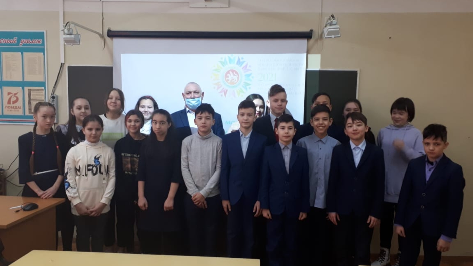 С такой целью на сегодняшний классный час был приглашен руководитель творческого объединения “Җәлил чаткылары” Раис Анисович Калимуллин. Ученики 6 в класса познали тонкости написания стихотворных строк, получили ответы на свои вопросы. В итоге мероприятия ребята сделали вывод, что родной язык – это богатство, к которому необходимо относиться бережно и с уважением, не засорять речь грубыми и бессмысленными словами и обязательно уважать язык других народов.