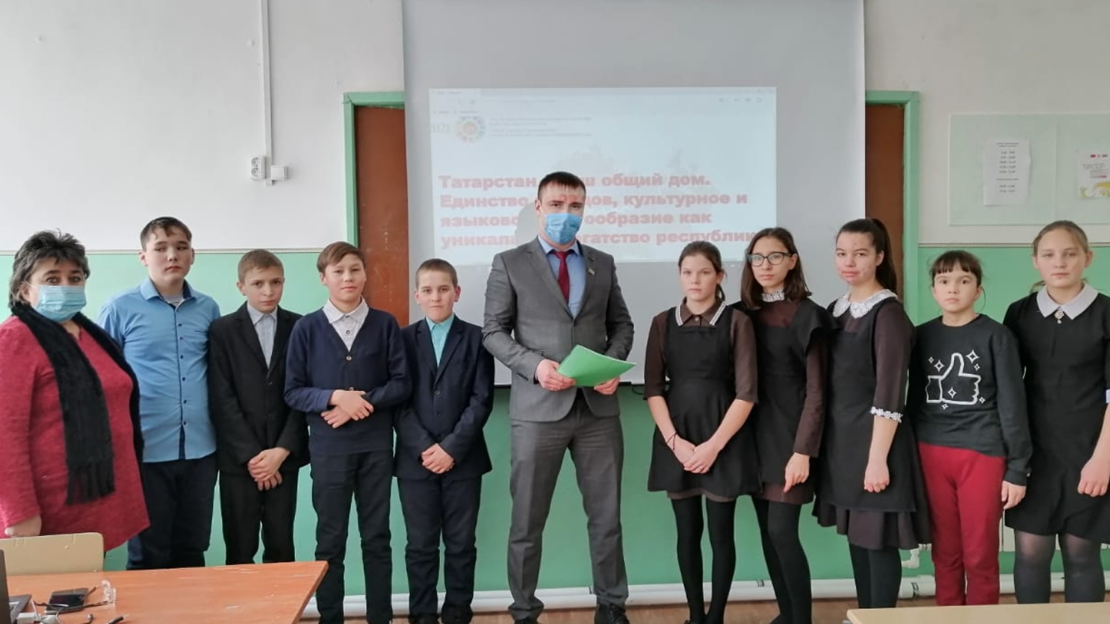 19 февраля в МБОУ «Александровская ООШ имени Героя Советского Союза А.А.Казакова» для учащихся 7-8 классов прошёл парламентский урок на тему «Татарстан – наш общий дом. Единство народов, культурное и языковое многообразие как уникальное богатство республики» ,посвящённый объявленному в республике Году родных языков и народного единства. Перед учениками выступил Глава Александровского сельского поселения, депутат районного Совета Сармановского муниципального района Республики Татарстан Гафиятуллин Артур Раилевич. В своём выступлении он выделил важность сохранения национальных обычаев и традиций. Рассказал,как государство активно развивает и бережно поддерживает традиционные культуры всех проживающих народов в Республике.