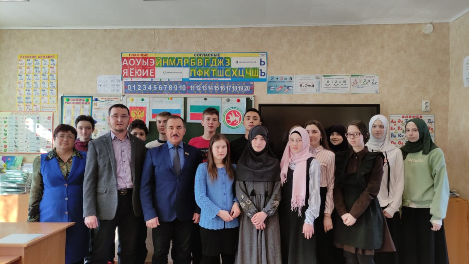 Этот урок посвящен нашей республике, району, о достопримечательностях и населении Республики Татарстан. На мероприятии участвовал глава Альметьевского сельского поселения Сармановского муниципального района Газизов Данияр Анварович.
