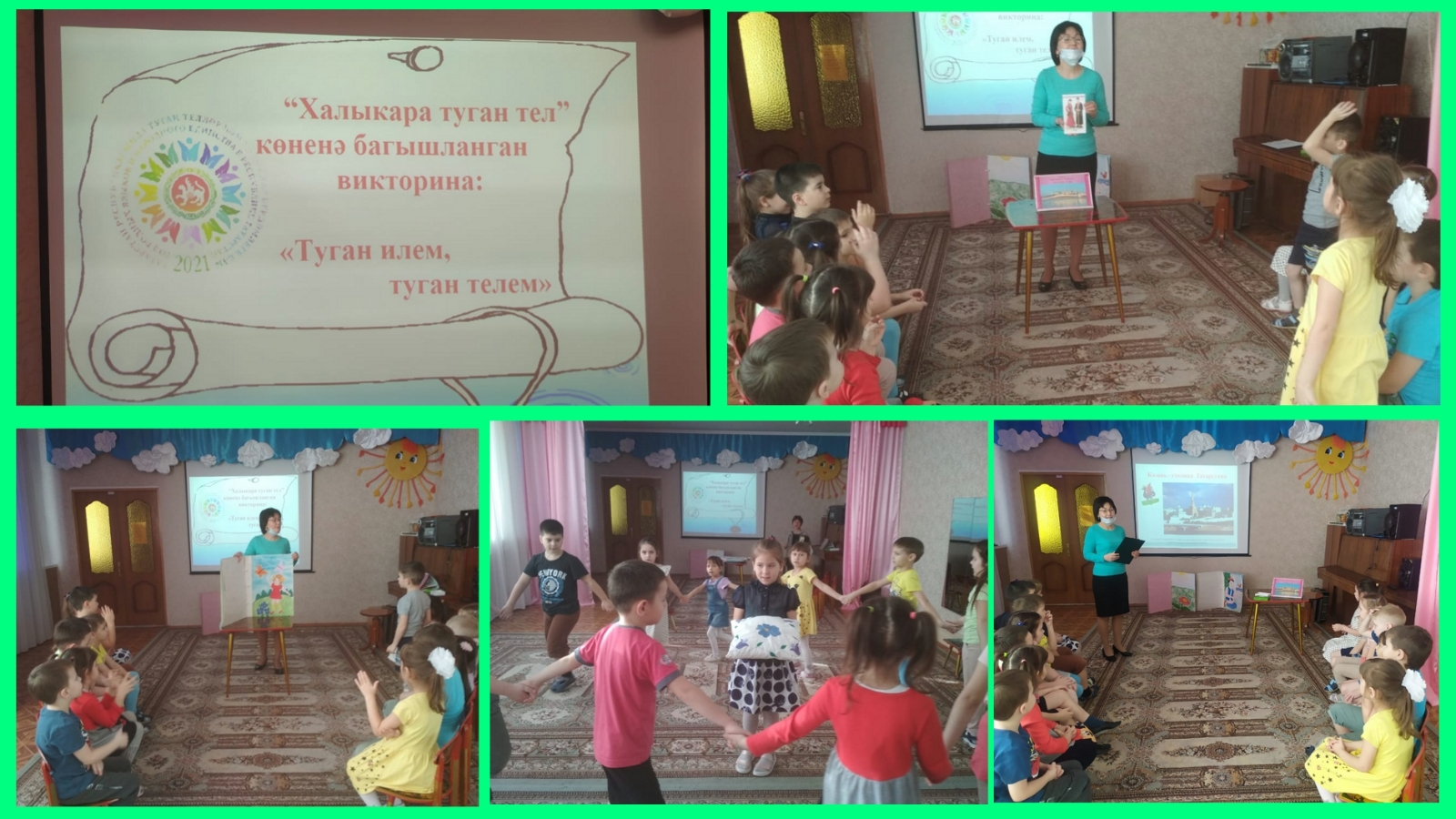 В подготовительных группах МБДОУ №3 «Алёнушка» прошла викторина "Родной край, родной язык", посвященная Международному дню родного языка. Цель: закрепление знаний о родном крае, татарском языке, быте татарского народа; воспитание чувства гордости за свою нацию, за родной язык, за татарский язык.