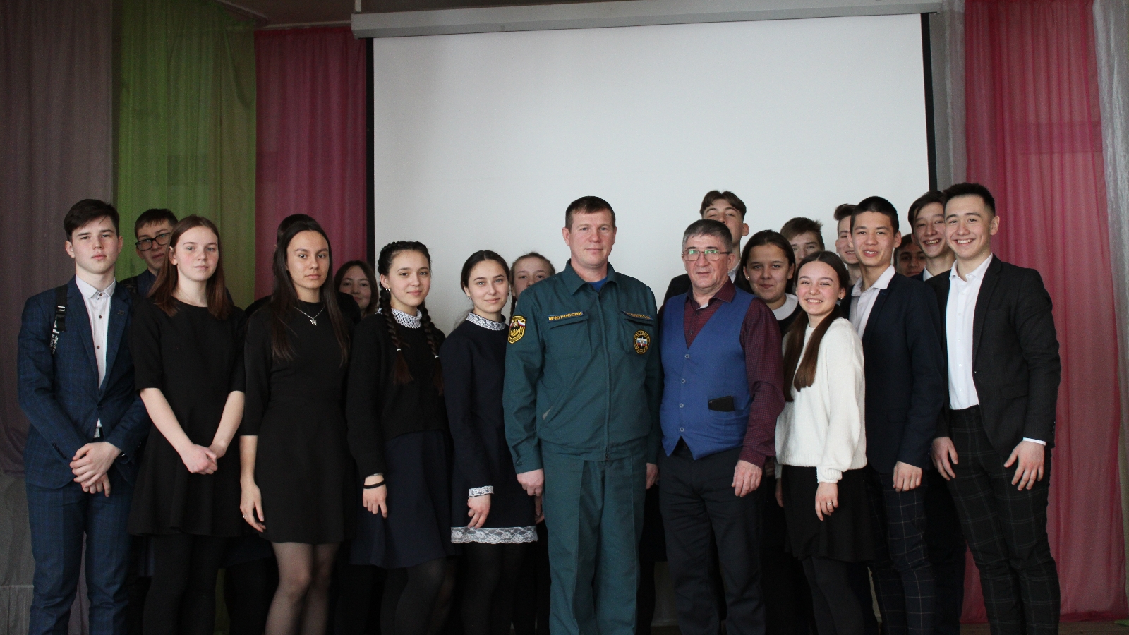 Сегодня ученики 10 класса Сармановской гимназии встретились с сотрудником МЧС командиром отделения 4 караула Ситдиковым В. М.Встреча была посвящена гражданской обороне. Ученики посмотрели фильм про историю гражданской обороны, изучили несколько методов связывания каната при спасательных работах в чрезвычайных ситуациях.