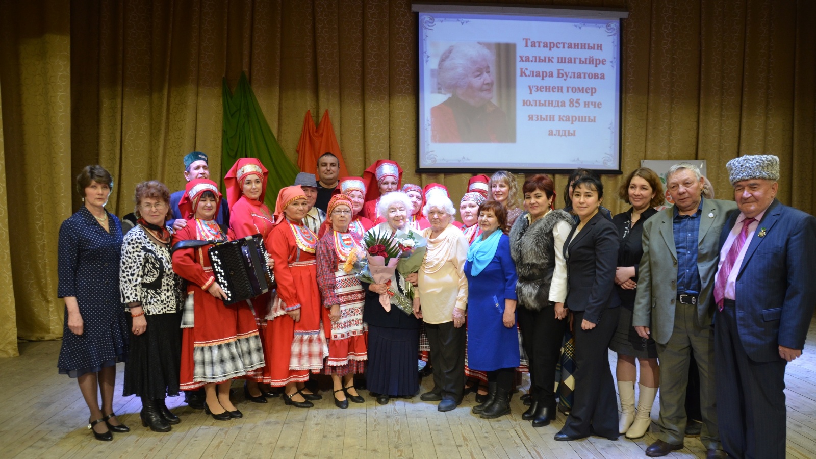 Сегодня в районном доме культуры прошло мероприятие, посвященное 85-летнему юбилею народной поэтессы Татарстана, лауреата Государственной премии РТ им.Г.Тукая Клары Булатовой. Праздник прошел в рамках Года родных языков и народного единства, и начался он с танца «Дружба народов» в исполнении воспитанников Сармановской десткой школы искусств им.И.Шакирова. Затем юбиляра поздравил Руководитель Исполнительного комитета Сармановского муниципального района Фандас Валиев. Он пожелал поэтессе доброго здоровья, неиссякаемой творческой энергии, поблагодарил ее за большой вклад в развитие и сохранение родного языка и вручил Благодарственное письмо Главы района и подарки. На мероприятии прозвучало много теплых слов в адрес Клары Булатовой от ее соотечественников, от тех, кто не равнодушен к ее творчеству. Библиотекари и учащиеся Сармановской средней школы прочитали ее стихи. Праздник украсили песни в исполнении Рафиса Уразаева; вокального ансамбля «Шатлык» Сармановской десткой школы искусств им.И.Шакирова; лауреата Государственной премии РТ им.Г.Тукая, композитора, автора-исполнителя Роберта Андреева; воспитанницы Сармановской десткой школы искусств им.И.Шакирова Рамили Хусаеновой; кряшенского народного фольклорного ансамбля «Игәнә». А красивый танец в исполнении хореографического коллектива «Жасмин» Сармановской детской школы искусств им.И.Шакирова добавил мероприятию ярких красок. Сюрпризом для поэтессы стал приезд Рамиля Хадиева, внука известного композитора Роберта Андреева. Он сыграл для нее мелодии известных татарских песен. Вечер прошел в теплой, душевной обстановке и оставил в душе зрителей приятные воспоминания.