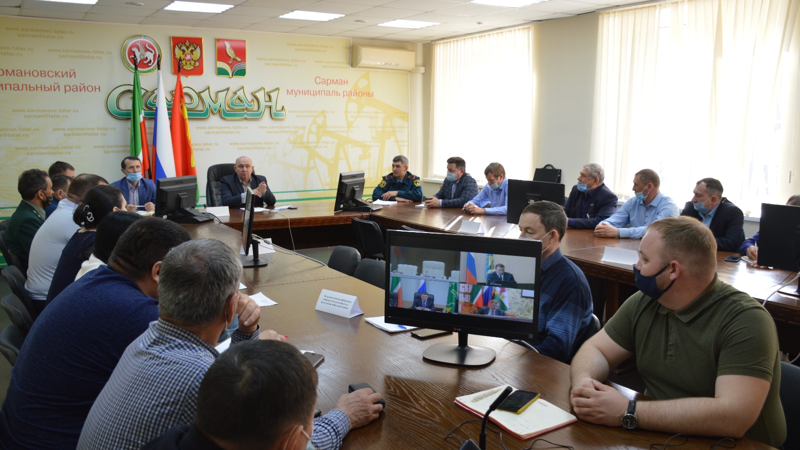 Сегодня в малом зале заседаний Совета состоялось .заседание районной комиссии по предупреждению и ликвидации чрезвычайных ситуаций и обеспечению пожарной безопасности. Заседание вел Руководитель Исполнительного комитета района Фандас Валиев.
