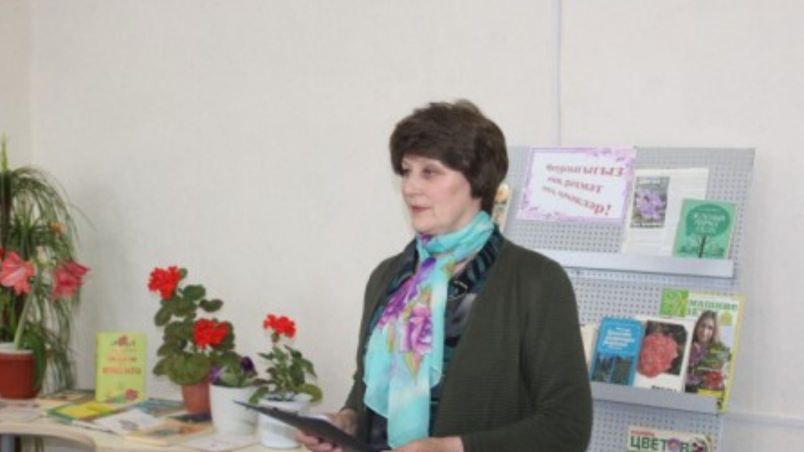 Библиограф Гульнур Мадьярова познакомила читателей с литературой, предназначенной как для опытных цветоводов, так и для тех, кто только сейчас делает первые шаги в этом замечательном занятии. Заведующая отделом комплектования Энзе Шаехова рассказала, как нужно ухаживать за цветами, в какое время лучше поливать и сколько.
