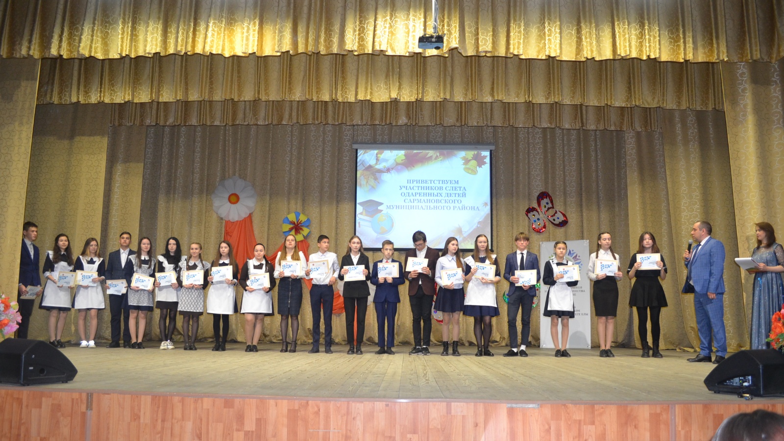16 апреля 2021 года прошел Слёт одаренных детей Сармановского муниципального района. На слете приняли участие 115 победителей муниципального этапа всероссийской олимпиады школьников. Они награждены сертификатами. Победителю республиканского этапа всероссийской олимпиады вручён грант Главы Сармановского муниципального района на сумму 10000 и учителю, подготовившему победителя, грант Главы на сумму 5000 рублей.