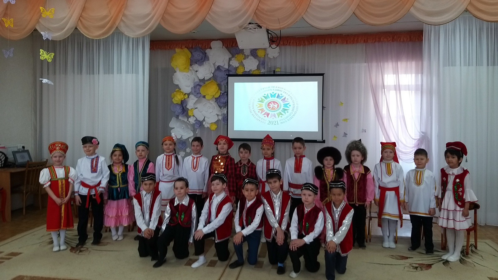 В МБДОУ №7 "Ляйсан" пгт. Джалиль с детьми подготовительной к школе группы провели развлечение под названием "От культуры своего народа к культуре соседних народов", посвященный Году родных языков и народного единства в Республике Татарстан. Целью этого мероприятия является ознакомление детей с национальной культурой народов Поволжья.