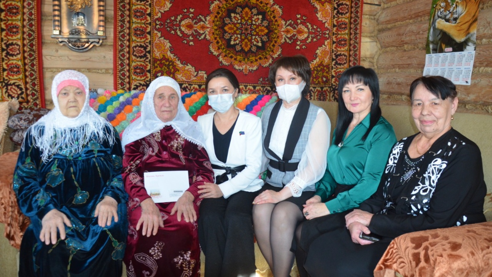 Сегодня жительнице села Сулюково Аглямовой Хание Гильмулловне исполнилось 90 лет. От имени Главы района Фарита Хуснулллина с юбилеем ветерана поздравила заместитель Главы района Гузель Гараева, вручила поздравительную открытку Президента РФ Владимира Путина, памятный подарок. К поздравлениям присоединились директор КЦСОН "Шафкать" Гульнара Хузина, глава Шарлиареминского сельского поселения Наиля Хузина, председатель совета ветеранов Роза Шайгарданова.