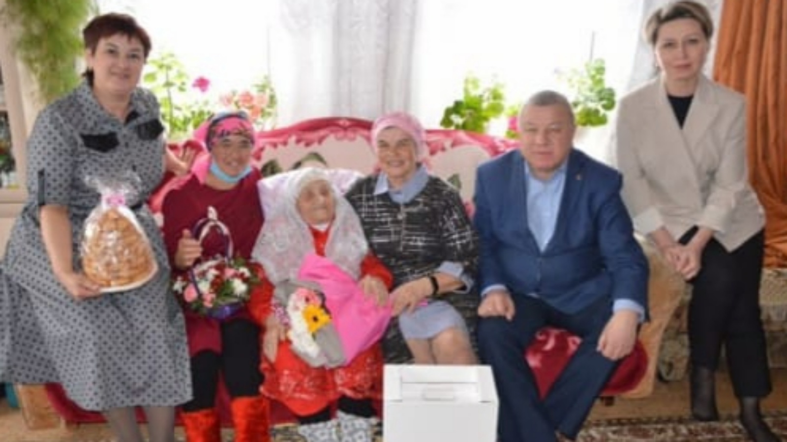 Глава Сармановского муниципального района Хуснуллин Ф.М. , Руководитель аппарата Совета Исмагилова Ю. Р. и Глава Карашай-Сакловского сельского поселения Хусниева В.В. Поздравили ветерана с Международным женским днём, вручили подарки и цветы. Пожелали ей долгих лет жизни.
