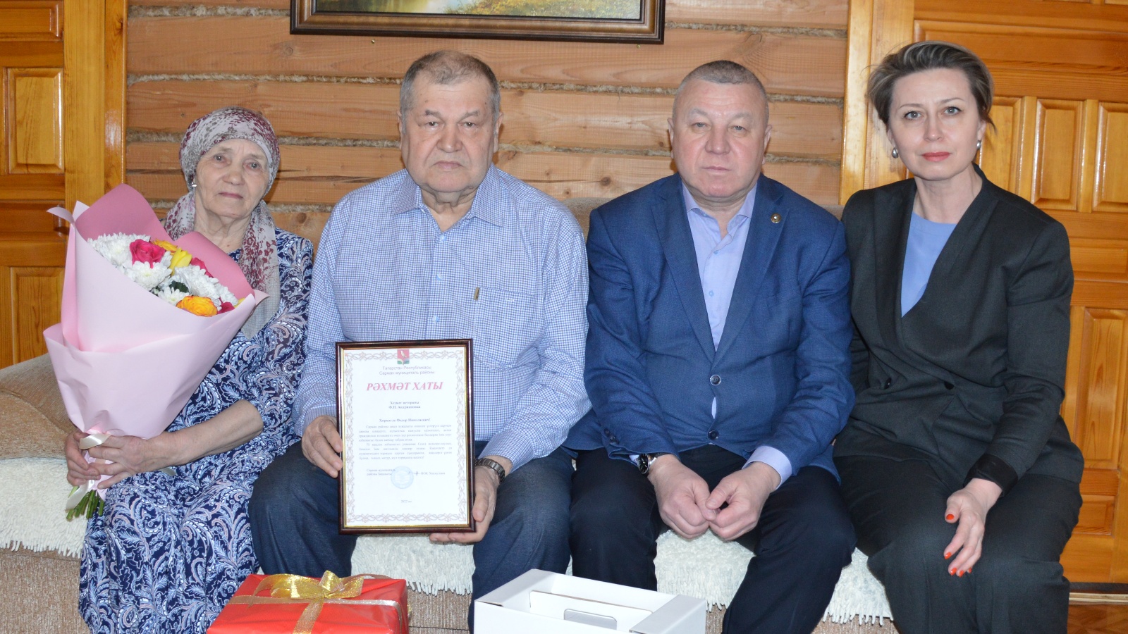 Его поздравили Глава района Фарит Хуснуллин и руководитель аппарата Совета района Юлия Исмагилова, пожелали ему здоровья и всех благ. Фарит Мунавирович вручил юбиляру Благодарственное письмо Главы района и памятные подарки.