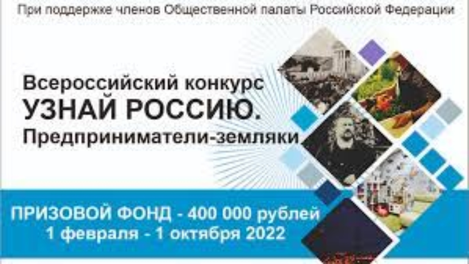 В Общественной палате Российской Федерации призвали жителей региона принять участие во Всероссийском конкурсе «Узнай Россию. Предприниматели-земляки». О старте конкурса сообщил первый заместитель председателя комиссии ОПРФ по территориальному развитию и местному самоуправлению, магистр и доктор бизнес-администрирования Леонид Шафиров. Призовой фонд конкурса – 400 тысяч рублей.
