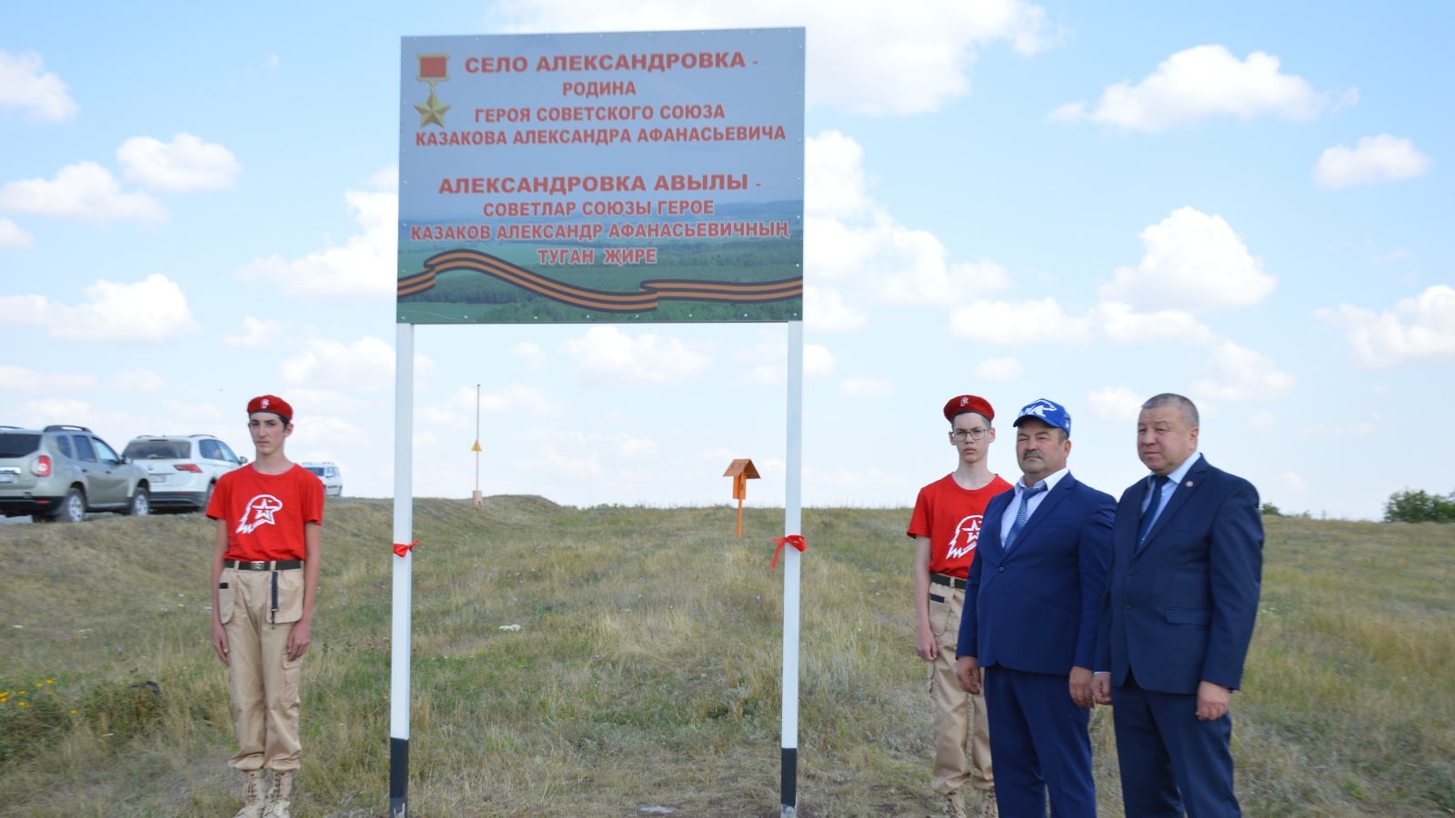 Сегодня, в рамках мероприятий, посвященных Дню Государственного флага Российской Федерации, установлен аншлаг на въезде в село Александровка. Село Александровка - родина Героя Советского Союза Казакова Александра Афанасьевича.