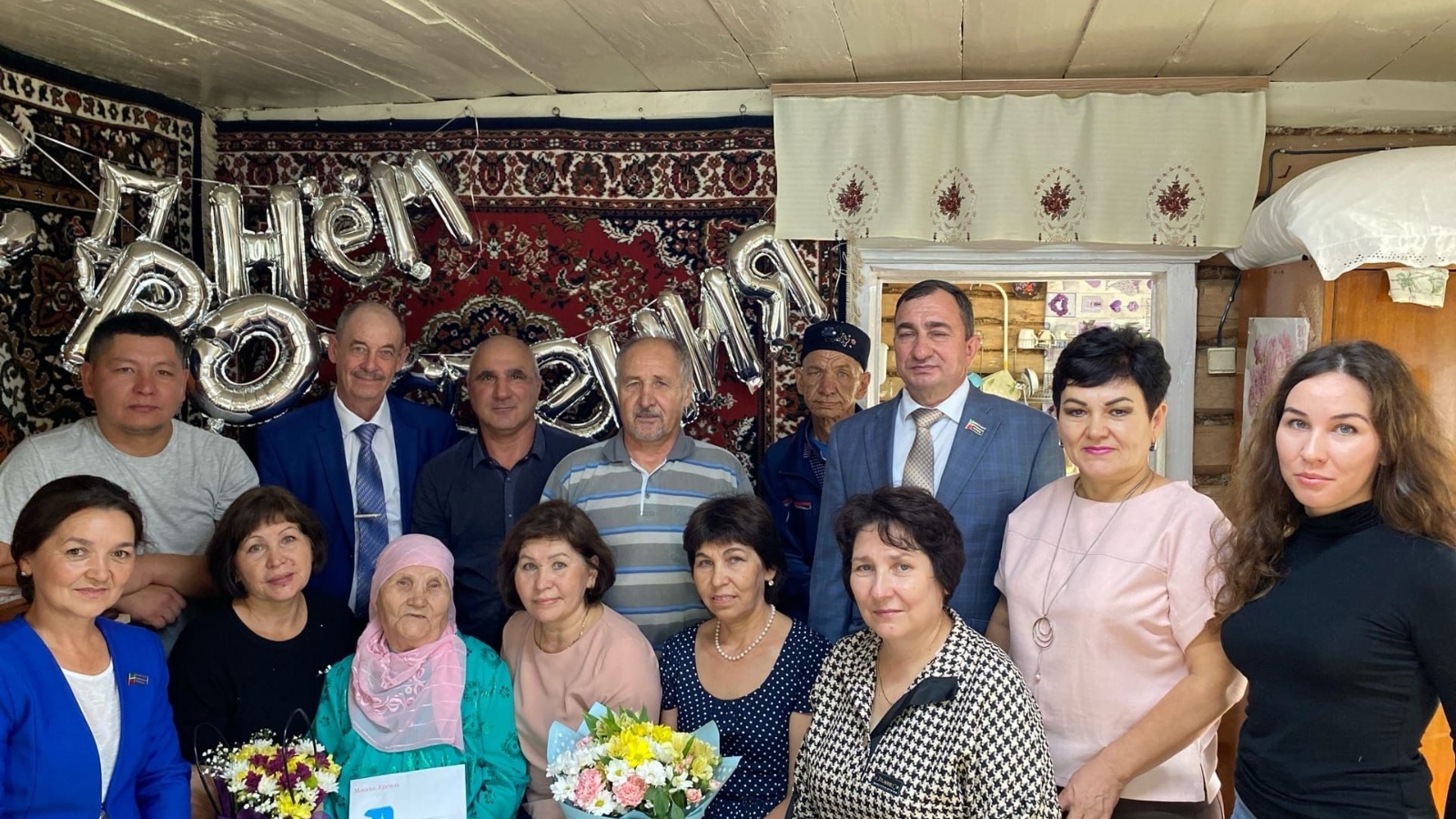 От имени Главы района Фарита Хуснуллина с юбилеем ветерана поздравила заместитель Главы района Гузель Гараева, вручила поздравительное письмо Президента Российской Федерации Владимира Путина, памятный подарок. К поздравления присоединились начальник управления социальной защиты района Лилия Гильмутдинова, глава поселения Айдар Габдрахманов.