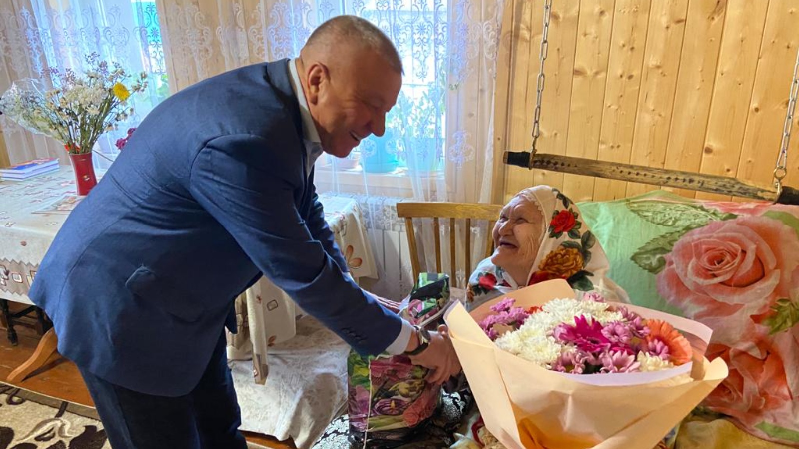 Район Башлыгы Фәрит Хөснуллин 100 яшен тутырган Вәсилә апаны өлкәннәр көне белән котлады