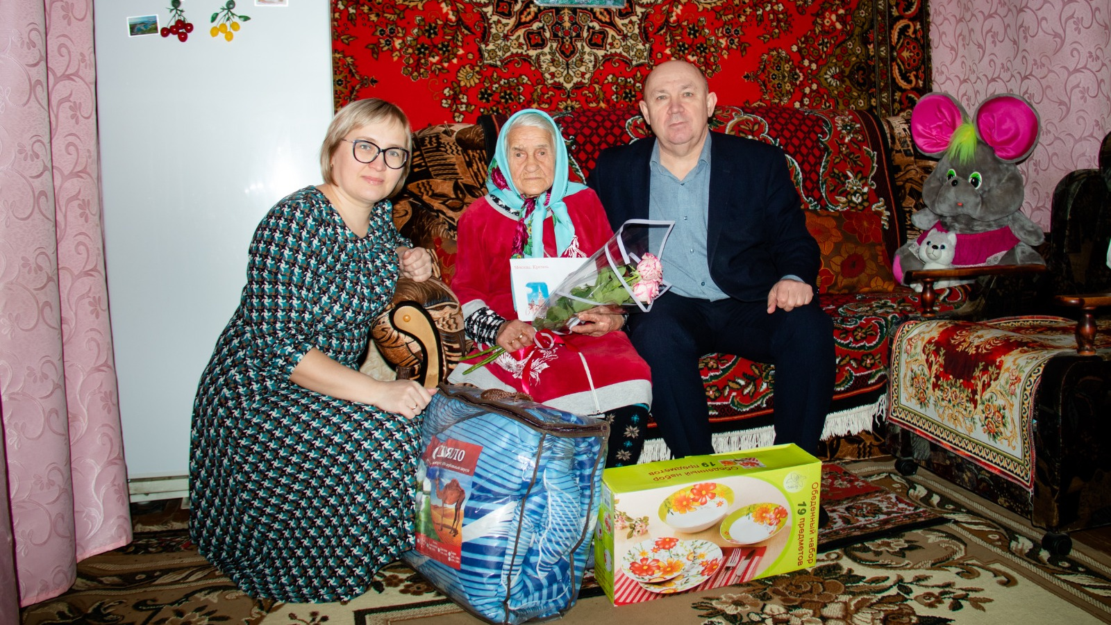 В этот памятный день именинницу поздравили руководитель исполнительного комитета Сармановского муниципального района Валиев Ф.А. и начальник отдела по организационной работе Совета п.г.т. Джалиль Гарифуллина Г.И. Они пожелали имениннику крепкого здоровья, бодрости духа и оптимизма, а также вручили поздравительную открытку от имени Президента России В.В.Путина и памятные подарки. У ветерана светились от счастья глаза, а с лица не сходила улыбка. Танзиля Габделбаровна искренне поблагодарила всех за теплые слова и оказанное внимание, также призналась, что даже в этом возрасте очень приятно получать цветы.