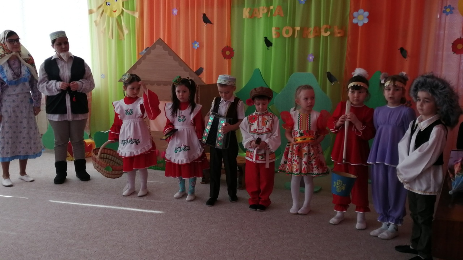 Соблюдая древние обычаи мы тоже провели сегодня в нашем саду этот праздник. Дети представляли народы татар, русских и башкир. Пришли они в гости к бабушке с дедушкой поиграли народные игры, пели песни и поели вкусную кашу.