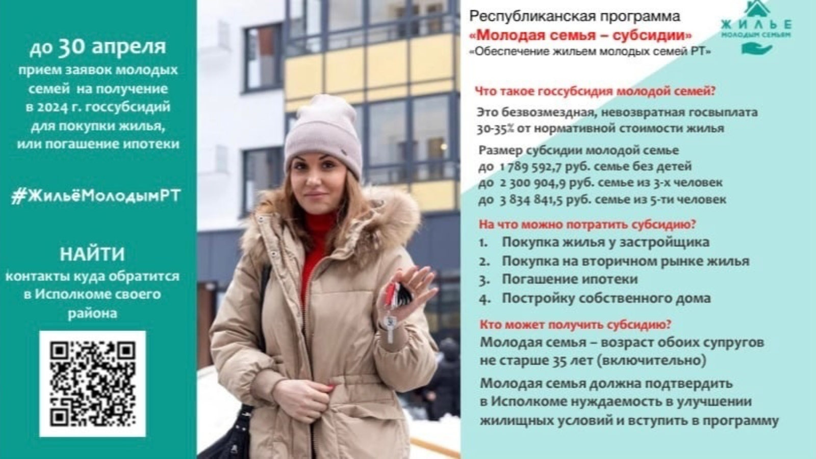 До 30 апреля в Сармановском муниципальном районе проходит заявочная кампания для молодых семей на получение государственной субсидии на улучшение своих жилищных условий.