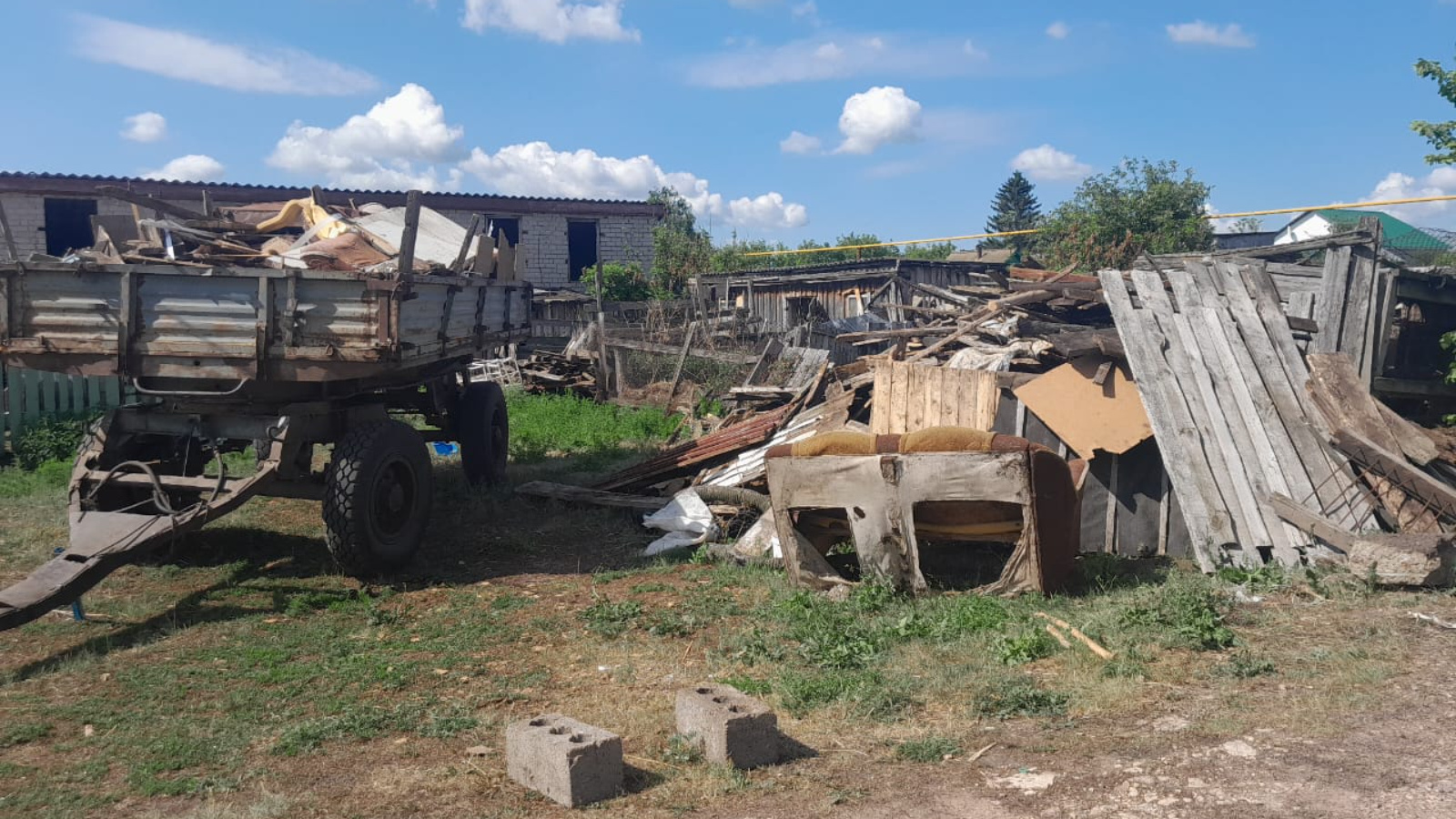 Идет очистка территории многоквартирного дома  с.Янурусово,выполняются работы по сносу бесхозных старых построек,сараев.