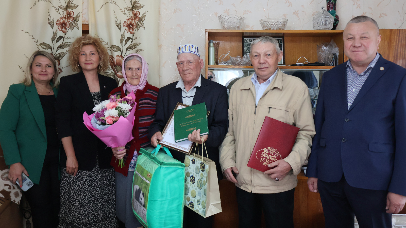 Сегодня жителю села Сарманово Ханифу Хасановичу Хасанову исполнилось 90 лет. Юбиляра поздравил Глава района Фарит Хуснуллин, вручил благодарственное письмо и памятные подарки.
