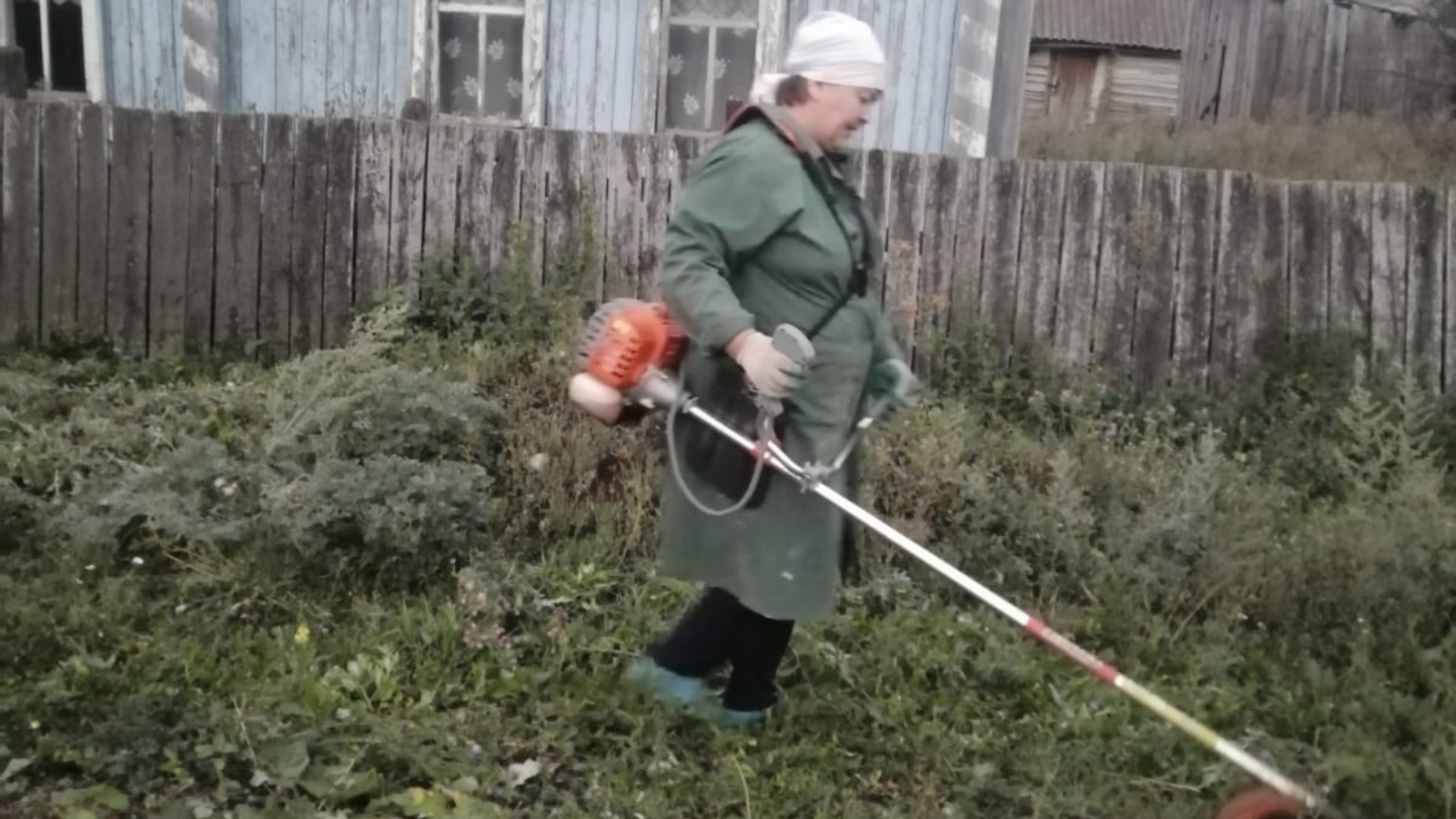 Работники Кульметьевского СДК скосили траву (сорняки) возле заброшенных домов