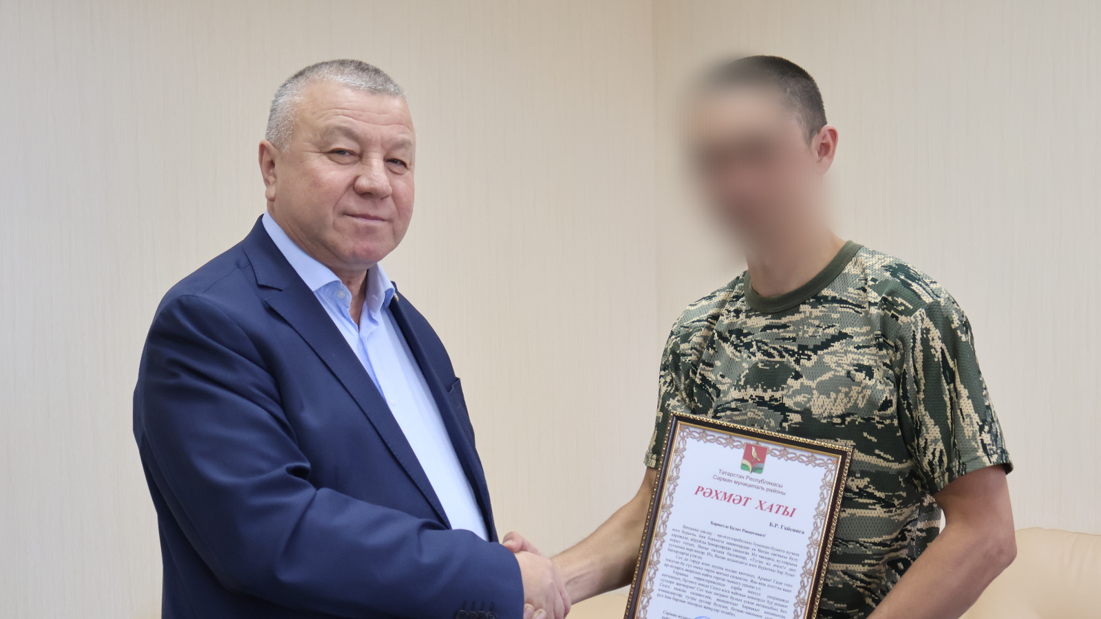 Побеседовали о военной обстановке, необходимой провизии. Фарит Мунавирович вручил благодарственное письмо, памятные подарки, поблагодарил военного за верную службу и пожелал скорейшего возвращения живым и здоровым!