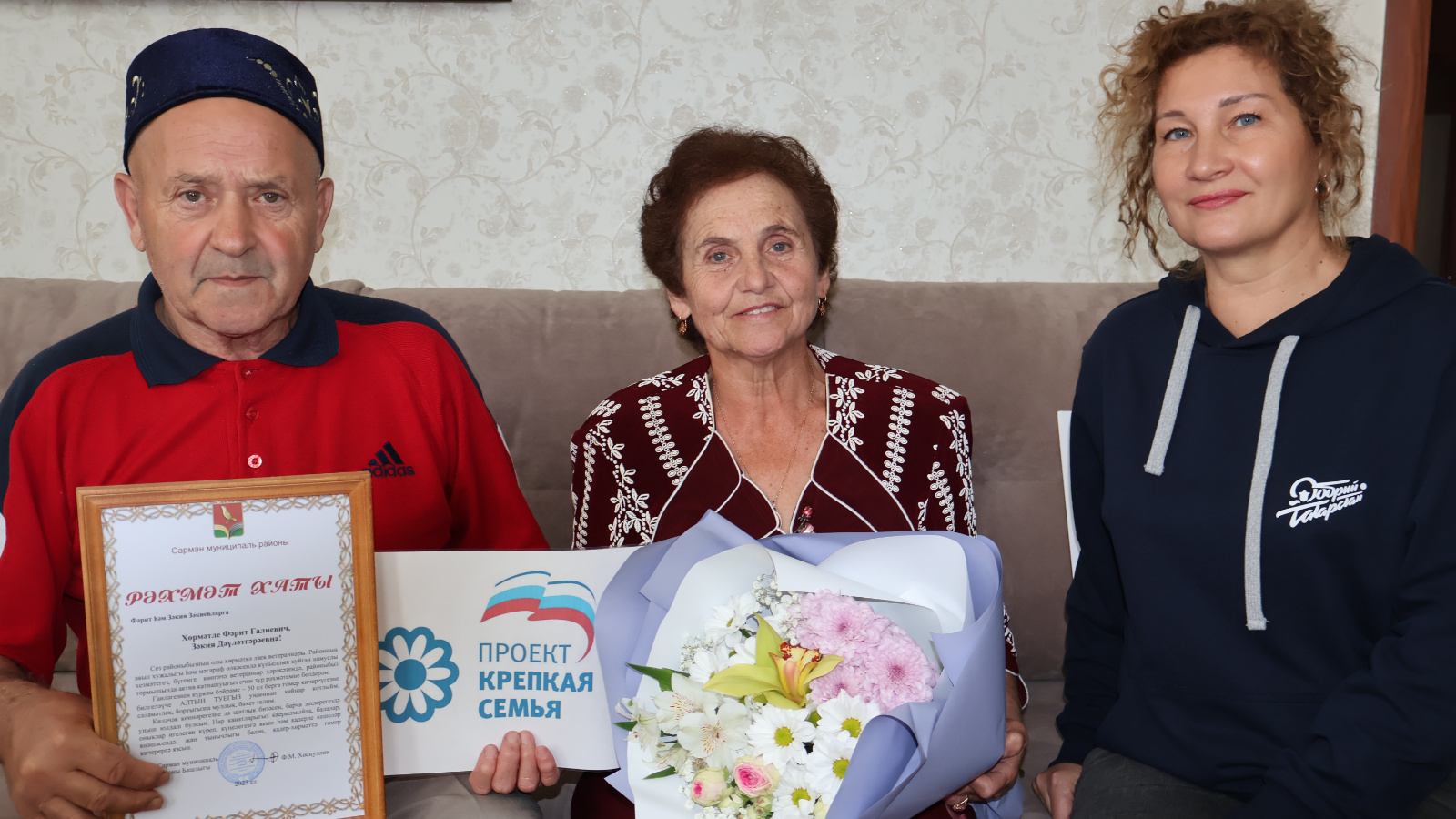 Сегодня в декаду пожилых людей в рамках проекта «Крепкая семья», Всероссийского социального про-семейного проекта «Семья-основа мира» и Года национальных культур и традиций заместитель руководителя Исполнительного комитета Сармановского муниципального района, председатель Совета женщин района Индира Сахипова поздравила юбиляров семейной жизни Фарита и Закию Закиевых с Золотой свадьбой. Свои добрые пожелания и поздравления юбилярам выразили начальник отдела ЗАГС Гульчачак Валишина, председатель Совета ветеранов Асыляр Харисов, секретарь Сармановского сельского поселения Лейсан Муртазина, родные и близкие. Юбилярам было вручено Благодарственное письмо Главы муниципального района и памятные подарки. Желаем юбилярам доброго здоровья и долгих лет совместной жизни.