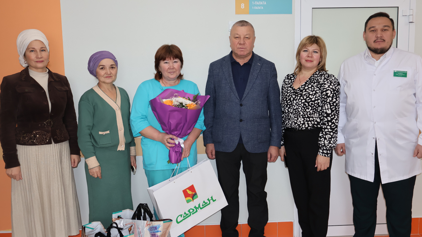 Глава района Фарит Хуснуллин поздравил Разилю Гибадуллину - санитарку районной больницы, два сына которой являются участниками СВО. Вручил продовольственные пакеты от Депутата Государственной Думы Российской Федерации Руслана Гаджиева.