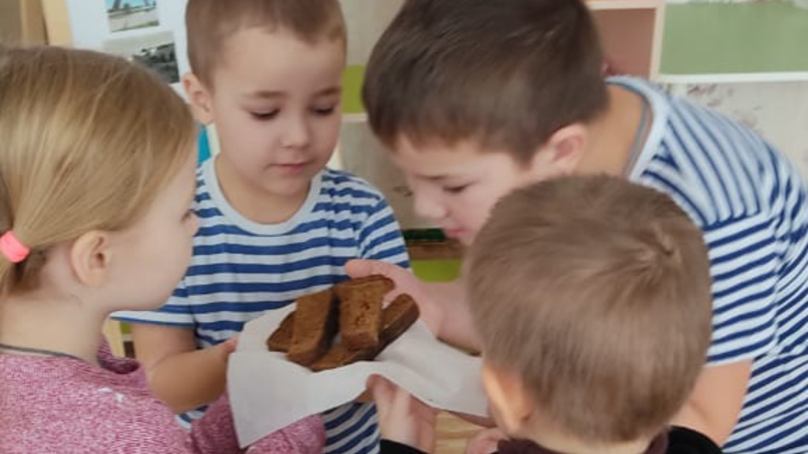 Мы провели беседу о хлебе, о его роли в жизни ленинградцев. Дети наглядно увидели кусочек хлеба, который на протяжении многих блокадных дней оставался для человека единственным источником жизни и надежды.