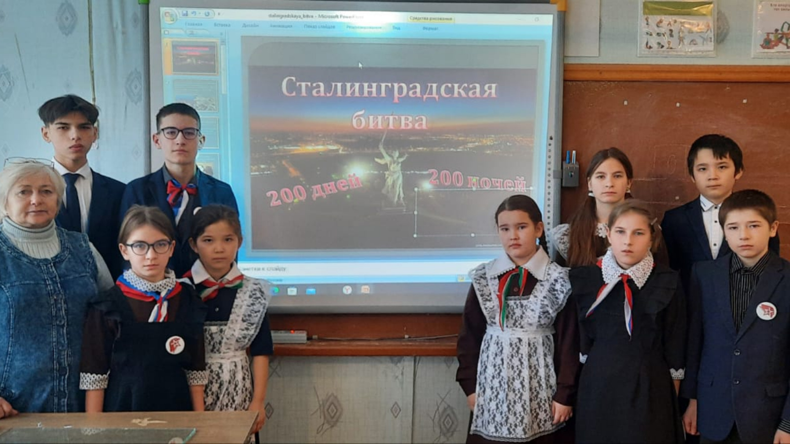 В ходе урока был показан видеофрагмент о ключевых моментах Сталинградской битвы. В течение мероприятия ребята много узнали о героизме и мужестве наших солдат, о командном составе, о подвигах медсестёр, познакомились с историческими памятниками той великой битвы: Мамаевым курганом, домом Павлова, музеем-панорамой «Сталинградская битва», посмотрели хронику Сталинградской битвы. Победа советских войск в Сталинградской битве является крупнейшим военно-политическим событием в ходе Второй мировой войны.