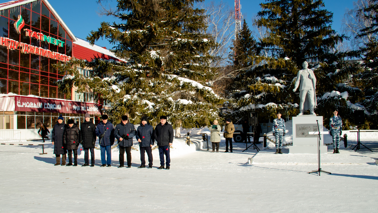 15 февраля – важная дата для жителей нашего поселка. Это день рождения легендарного татарского поэта, Героя Советского Союза Мусы Джалиля, имя которого носит наш поселок. В честь этого события на площади НГДУ «Джалильнефть» сегодня прошел митинг. У памятника М.Джалилю был выставлен почетный караул. Почтить память Героя Советского Союза пришли представители творческой интеллигенции поселка, школьники, их преподаватели и любители поэзии.