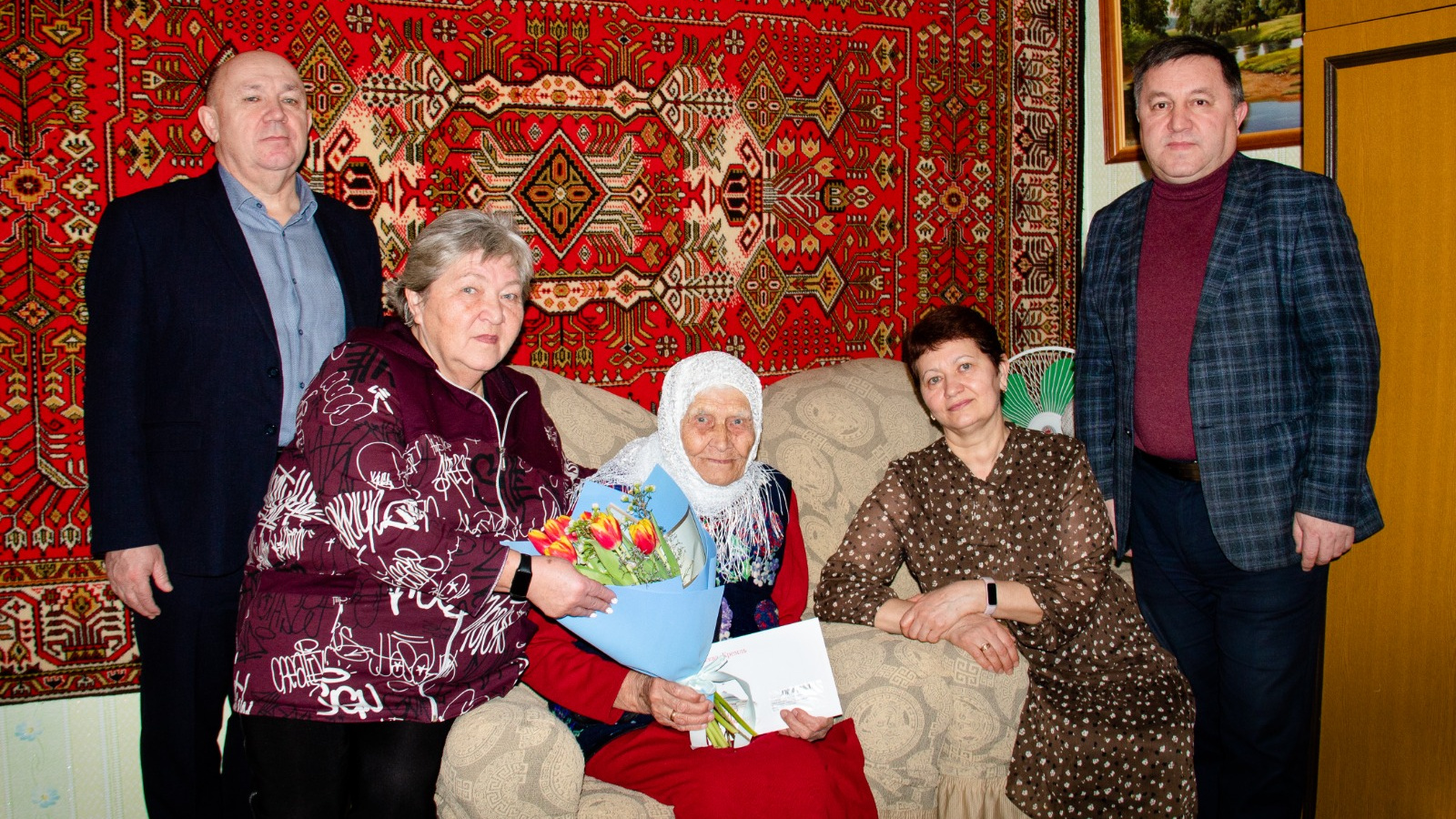 В этот памятный день именининицу поздравили руководитель исполнительного комитета Сармановского муниципального района Валиев Ф.А. и Глава муниципального образования «пгт Джалиль» Каримов Р.А. Гости юбилярше вручили букет цветов, поздравительную открытку Президента России Владимира Путина и памятные подарки. Они пожелали ей радостной жизни, крепкого здоровья и уважения.