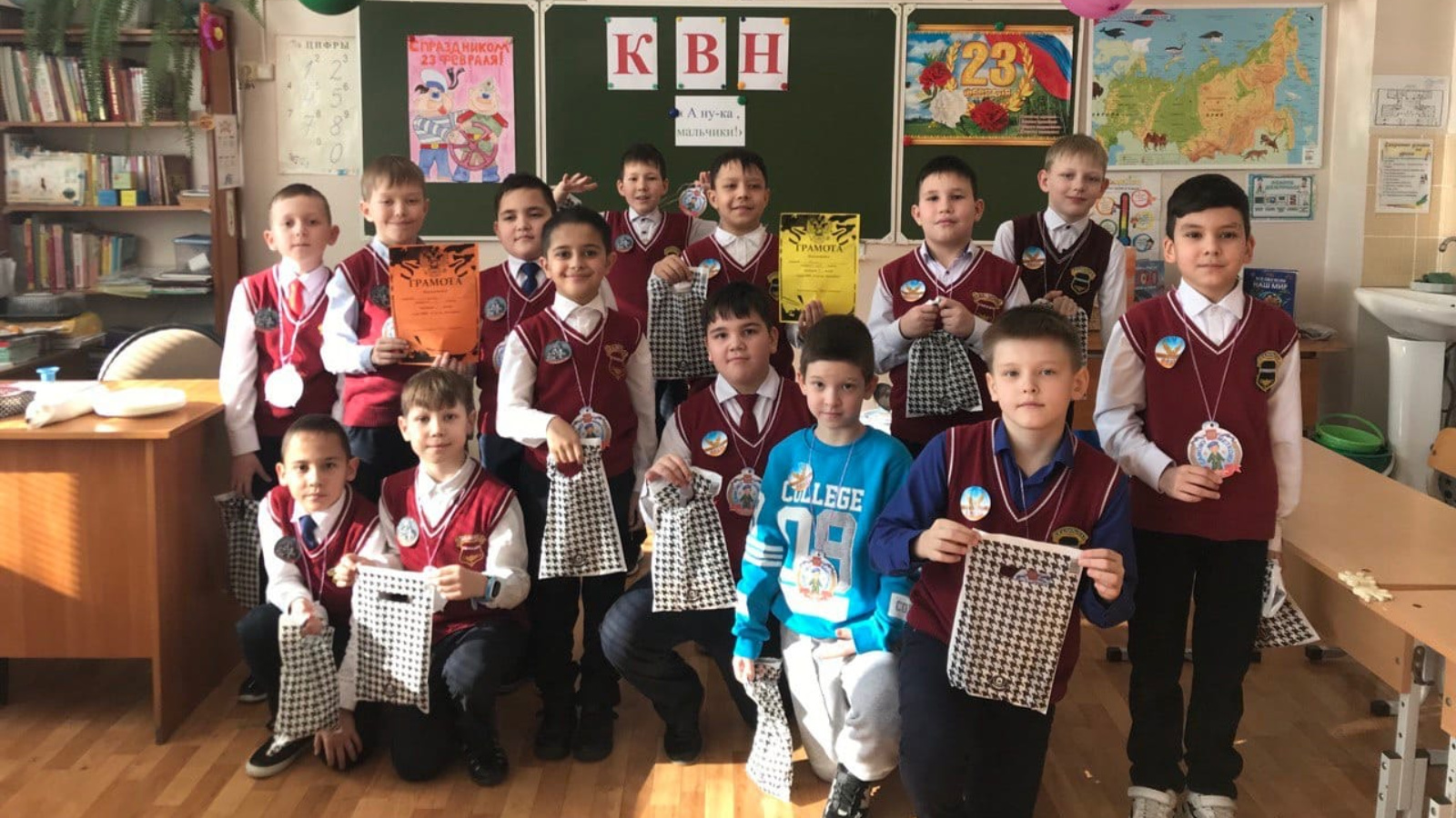 21 февраля в 3Б классе под руководством классного руководителя Каримовой З.Ф. прошел конкурс «А ну-ка, мальчики !», приуроченный ко Дню защитника Отечества. Маленькие участники соревновались в различных увлекательных конкурсах, демонстрируя свои способности и таланты. Были проведены конкурсы, такие как «Разминка», «Меткий стрелок», «Секретное сообщение», «Маскировка», «Народная мудрость», «Шофёры» и т.д. Будущие защитники страны показали свою ловкость, силу, выносливость, умение работать в команде. Все участники проявили большую активность, подарили друг другу хорошее настроение, радость общения и улыбки. Девчонки и мальчишки смеялись и веселились. Все были счастливы, а счастливые от восторга глаза детей - лучшая награда!