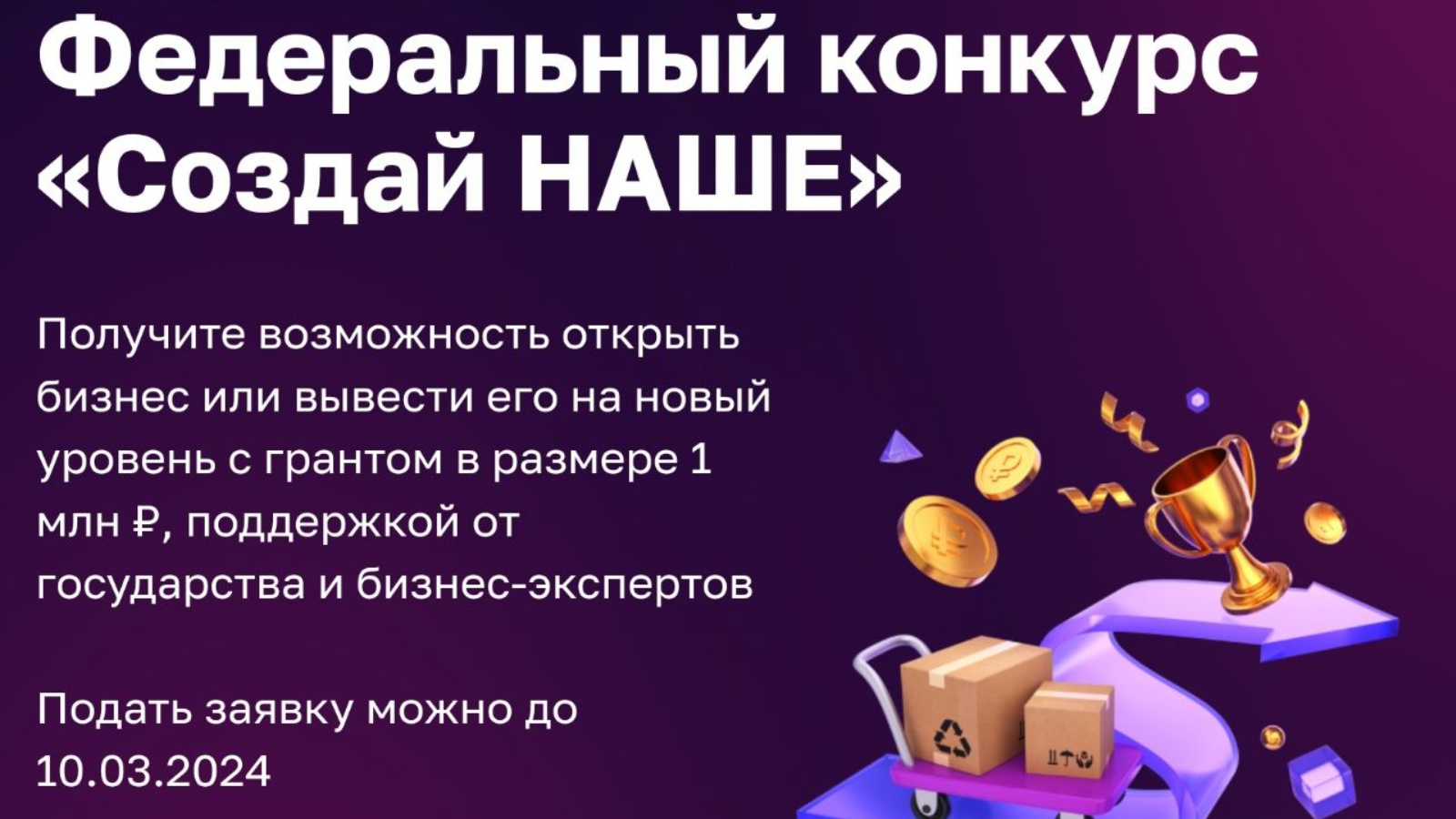 Агентство стратегических инициатив (АСИ) и Корпорация MCП объявили о запуске федерального конкурса по молодежному предпринимательству «Создай НАШЕ». Его участниками могут стать молодые люди от 14 до 28 лет, желающие создать свое дело или имеющие бизнес до двух лет. Регистрация открылась на Цифровой платформе MCП.РФ, подать заявки можно до 10 марта.