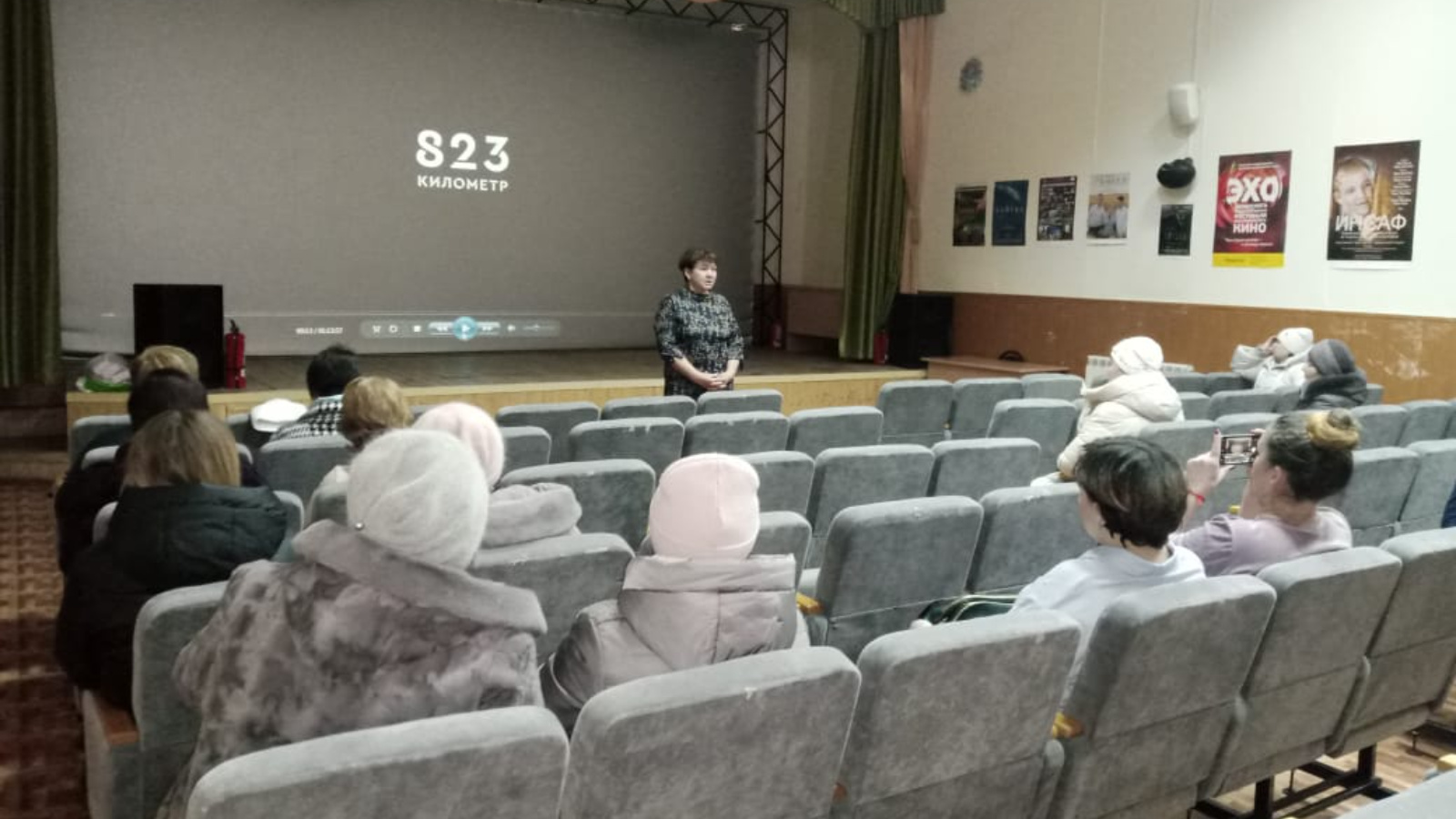 В кинотеатре «Сарман» началось мероприятие, посвященное к году семьи и 79-летию ВОВ для коллективов организаций района. 1 марта для работников районных и сельских домов культуры был показан татарстанский фильм «823-й километр». Перед сеансом выступила директор Кутемелинского сельского дома культуры Зиганшина Римма Амирзяновна. Она поделилась работой своего благотворительного фонда, который создан в поддержку участникам специальной военной операции.