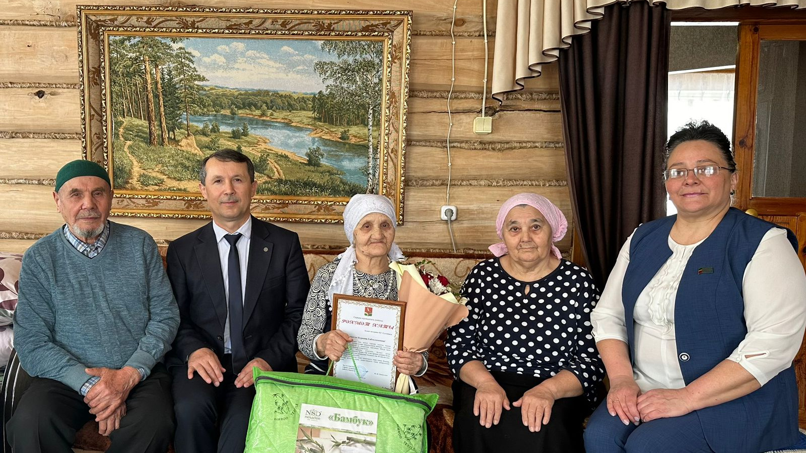 Юбиляра поздравил заместитель руководителя исполкома Сармановского муниципального района Гайфутдинов А.Р. , а также глава Янурусовского сельского поселения Мухамадиева А.А.Они вручили имениннице благодарственное письмо Главы Сармановского муниципального района, памятные подарки.