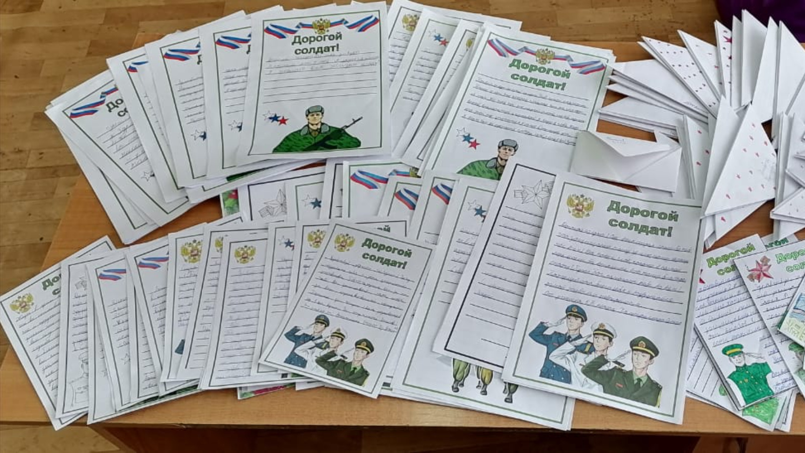 В преддверии Дня Защитника Отечества в МБОУ «Джалильская гимназия» проходит Всероссийская акция «Письмо солдату» для солдат находящихся в зоне СВО. Учащиеся,юнармейцы,участники движения первых пишут поздравительные письма и открытки для бойцов. В письмах они тепло поздравляют наших дорогих бойцов с приближающимся праздником и желают скорейшего возвращения с Победой домой.