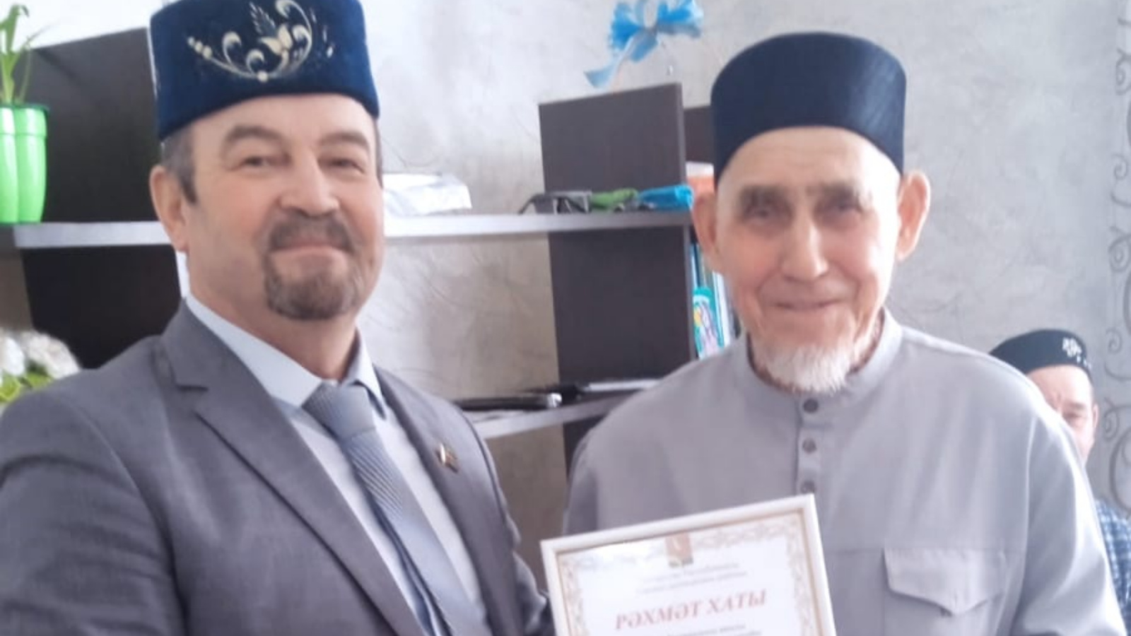 В Александровском сельском поселении состоялось вручение благодарственного письма от имени Главы Сармановского муниципального района Хуснуллина Ф.М. и Руководителя Александровского исполкома Вафина И.Ф. юбиляру Имам Хатибу Мечети Иман -Нуры Шириеву Сагадату Хуснимардановичу с 80 летним юбилеем.