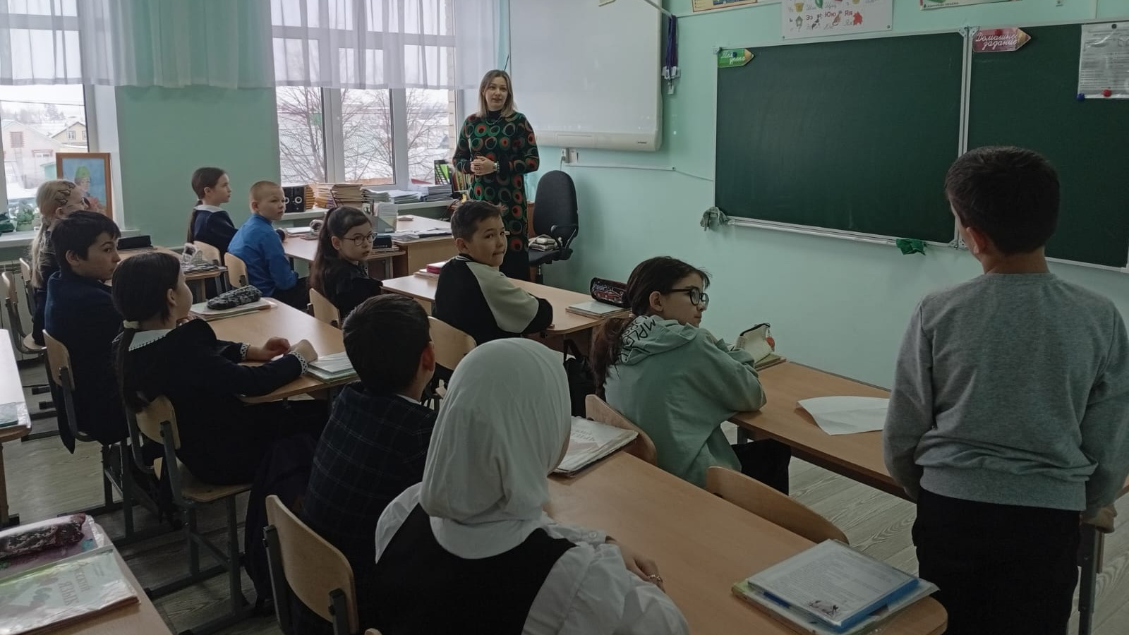 В рамках реализации проекта "Строки опаленные войной" проведен классный час "Они сражались за Родину", с учениками 4 В класса Сармановской гимназии.