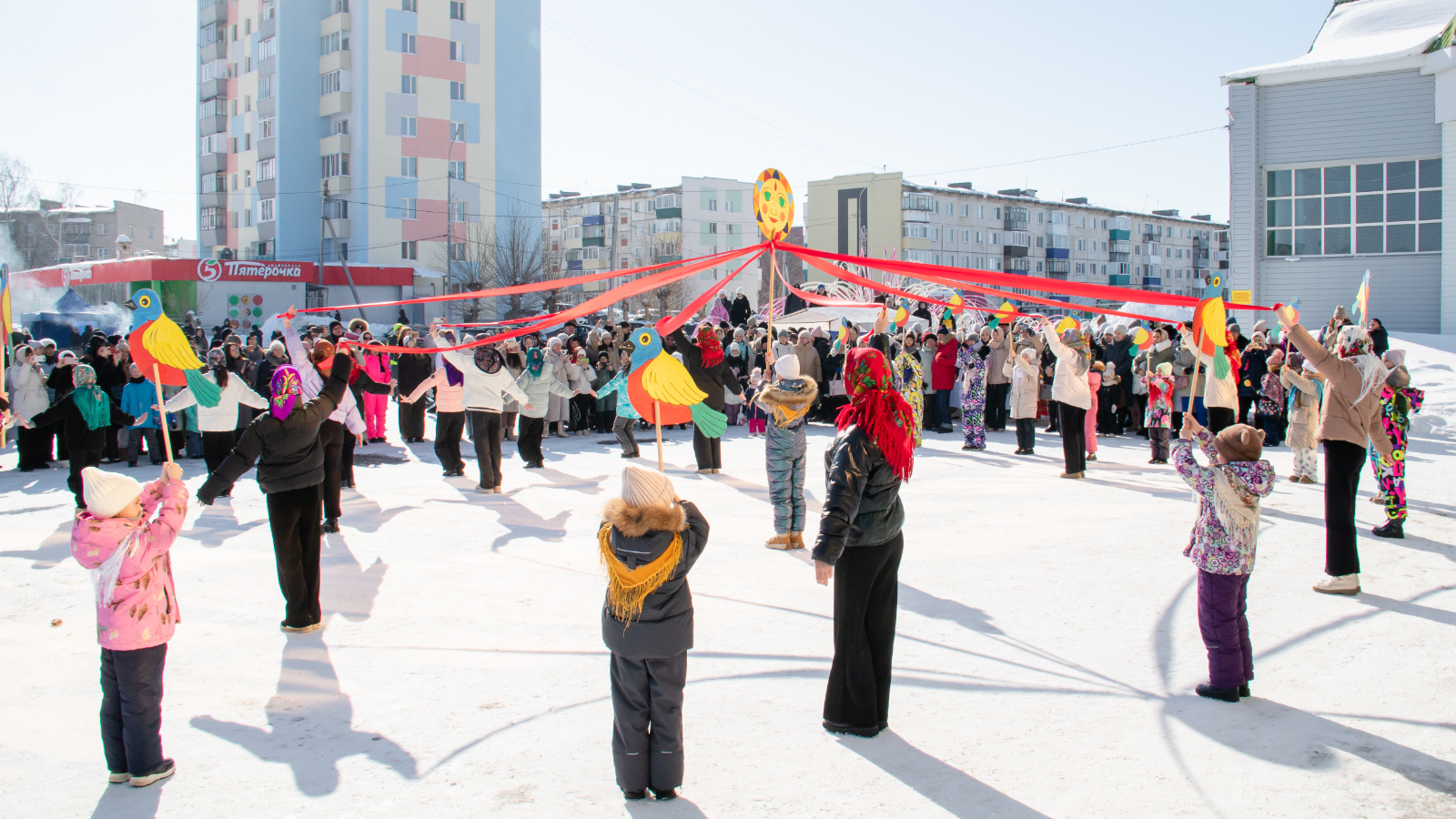 Праздник начался с театрализованного игрового представления, которое погрузило зрителей в атмосферу народных традиций и весеннего настроения. Яркие выступления творческих коллективов добавили празднику особого колорита. По традиции, кульминацией мероприятия стало сжигание чучела Зимы, символизирующее окончание холодного времени года и наступление теплых дней.