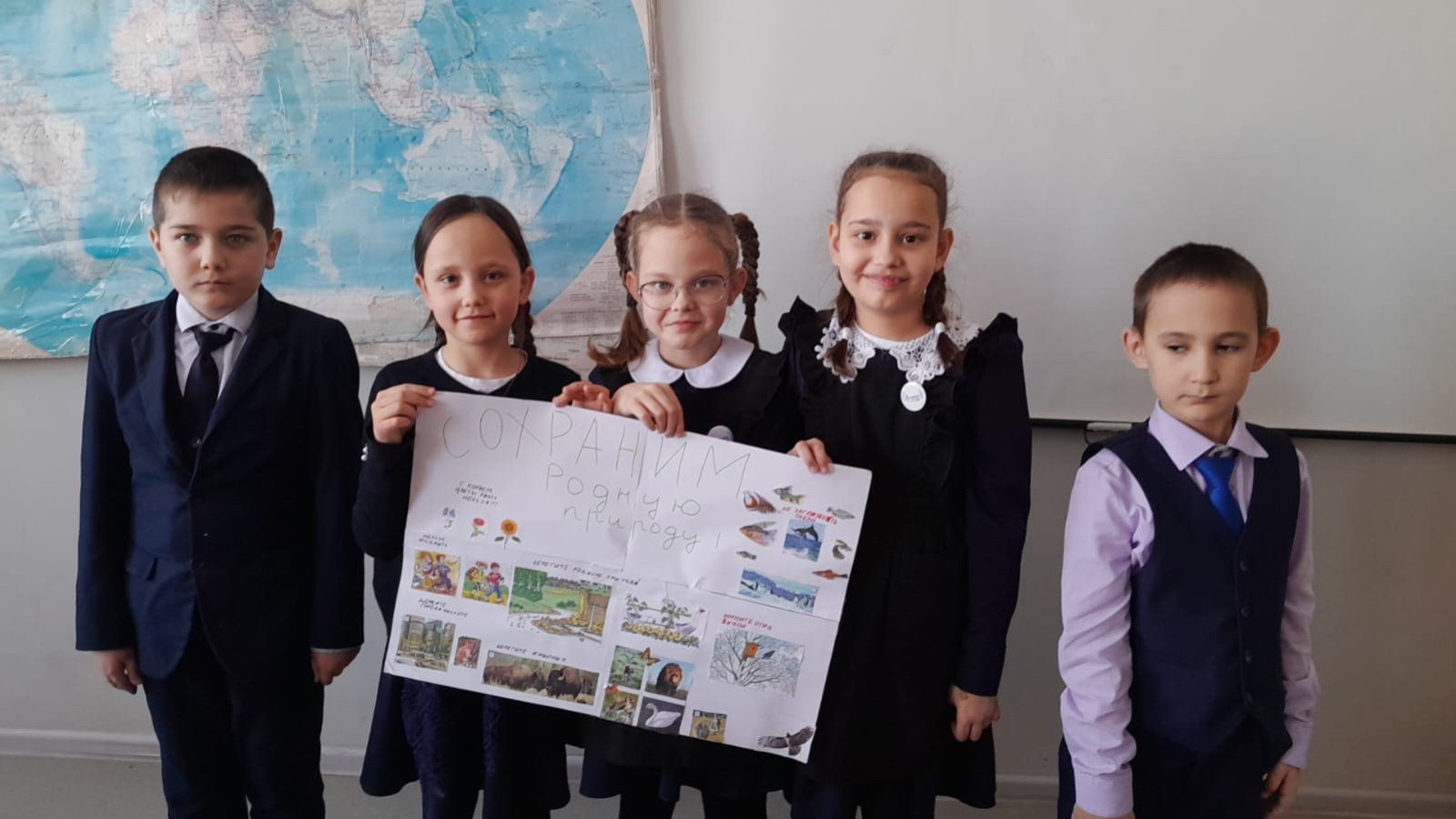 Ребята оформили плакат "Сохраним родную природу!"