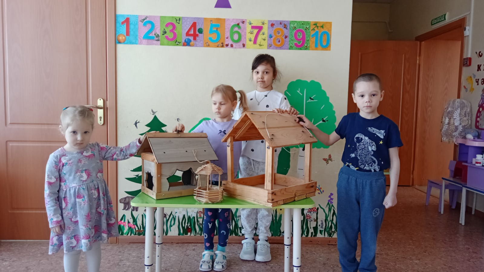 Воспитанники Александровской дошкольной группы совместно с родителями смастерили самые разнообразные кормушки для птиц. Фантазии не было предела: коробки, пластиковые бутылки и разнообразный природный материал.