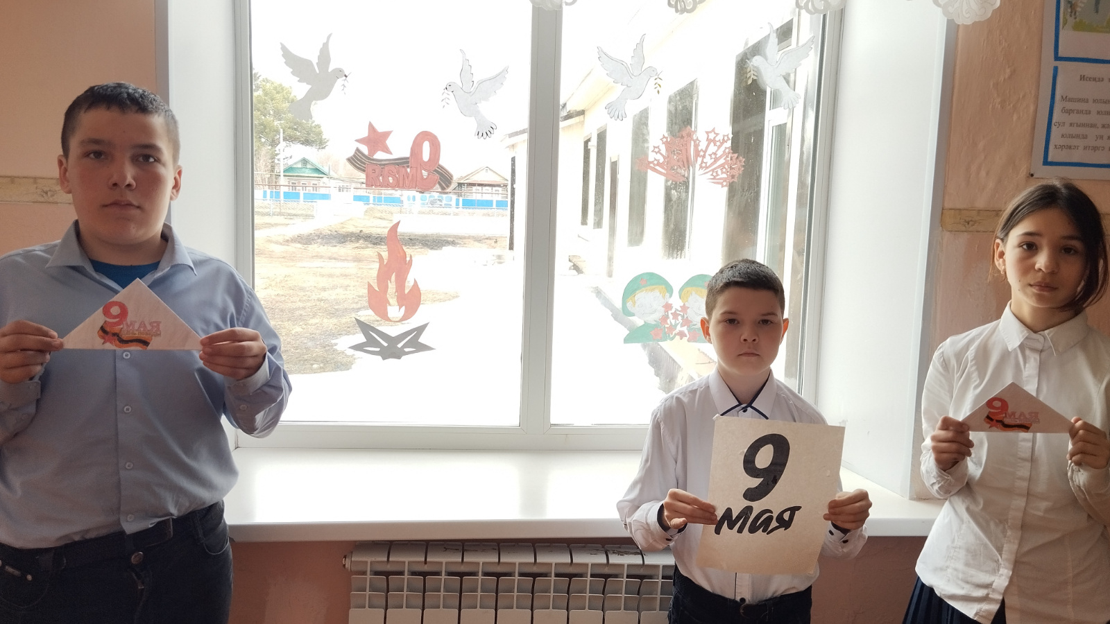 МБОУ "Кавзияковская ООШ" присоединилась к акции «Окна Победы». Обучающиеся школы и их классные руководители украсили окна тематическими рисунками и символами Великой Победы.